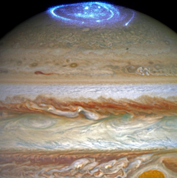 На Юпитере наблюдаются постоянные мощные ветра скоростью свыше 600 километров в час. Темные облака состоят из различных химических элементов, а светлые - из замороженных частиц аммиака. Планете свойственна чрезвычайная климатическая переменчивость. Примечательно, что на ее поверхность нередко выпадают дожди из алмазов.