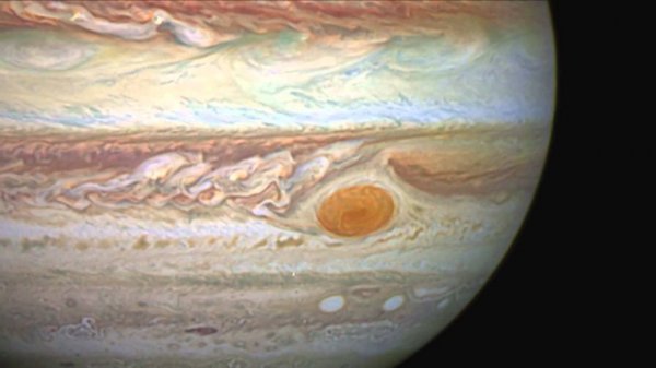 Красное пятно невероятных размеров на поверхности гиганта вызывает немало вопросов и представляет собой ураган, скорость ветра в котором приближается к 450 километрам в час и движется не по ходу часовой стрелки. Специалисты отмечают, что оно периодически меняет яркость и площадь протяженности.